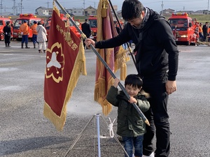 乗り物が大好きな孫は、整列した消防車に大喜び。